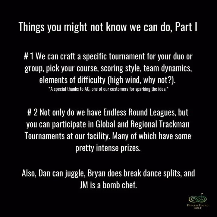Whether you are looking to take your game to the next level, work on your golf mobility/fitness or a place to play one of your bucket list courses from around the world - The Endless Round’s possibilities are endless…